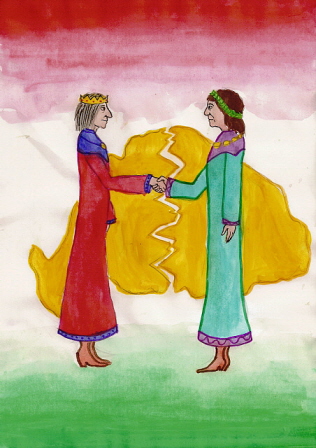Il re di un paese vicino andò in visita dal re Mattia. Si salutarono come vecchi amici.